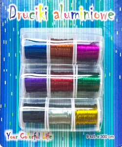 Druciki Aluminiowe na Szpulach 0,3mm x 3m 9szt.