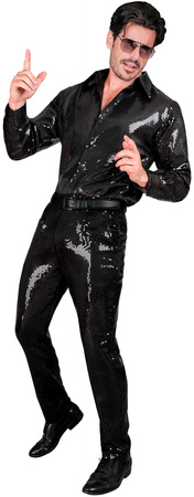 - Niepowtarzalne cekinowe spodnie męskie w kolorze czarnym stworzone z myślą o mężczyznach, którzy nie boją się przyciągać uwagi.